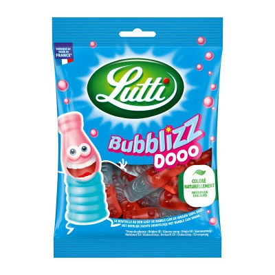 Découvrez les bonbons Bubblizz Dooo de Lutti, un délicieux mélange de tendresse et de pétillance. Ces friandises colorées, présentées dans une célèbre bouteille rose et bleue, vous séduiront par leur goût unique de bubble-gum, associé à une texture moelleuse et légèrement acidulée, idéale pour ravir les papilles des petits et des grands.
