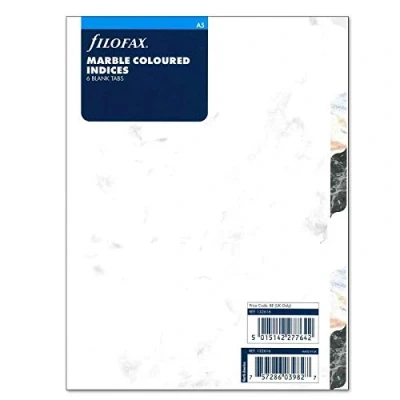 Index vierge A5 marbré 6 feuilles - 160 g/m² 3 superbes tons de marbre Compatible avec les organiseurs Filofax A5 et Clipbook Dimensions du papier : 156 x 210 mm