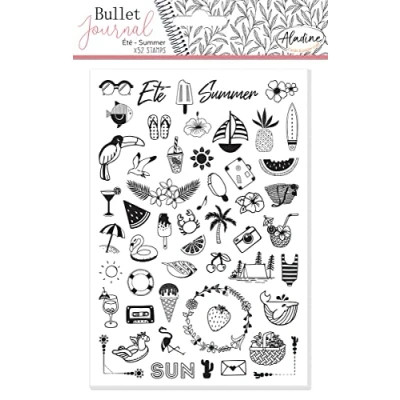 Aladine Stampo Bullet Journal ETE Planche de Tampons en Mousse, Empreinte Silicone Idéal pour Journal, Scrapbooking, Carnets Loisirs Créatifs DIY