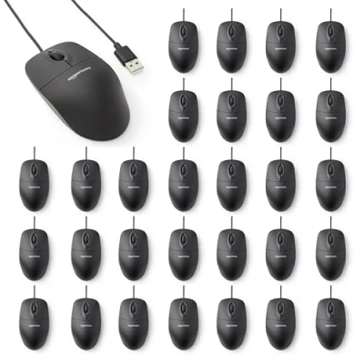 Amazon Basics Lot de 30 Souris USB filaires à 3 Boutons, Noir