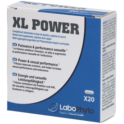 L'Aphrodisiaque XL Power 20 Gélules de Labophyto (https://www.sexyavenue.com/fr/marques/labophyto_404)a été conçu pour améliorer les performances sexuelles des hommes qui souhaitent de meilleures érections et un plaisir plus intense. XL Power contient lesprincipes actifssuivants : du tribulus qui améliore la fonction érectile grà¢ce à son influence bénéfique sur le taux de testostérone, du mélilot et du piper nigrum qui favorisent la circulation sanguine dans les micro vaisseaux sanguins pour une érection plus vigoureuse, du prunus amygdalus qui augmente le volume de sperme, de la l-arginine qui agit sur la production de monoxyde d'azote pour une meilleure érection, de la caféine qui permet de réduire la fatigue et donc de stimuler le désir sexuel, et des vitamines, minéraux et oligoéléments qui protàgent les cellules du stress oxydatif et contribuent au bon fonctionnement de la spermatogénàse et du désir sexuel (https://www.sexyavenue.com/fr/pour-le-desir-74). Conseil d'utilisation :prendre 2 gélules 1 h avant les rapports sexuels. Déconseillé aux personnes sous traitement antihypertenseur ou antidiabétique. Existe aussi enboite de 10 gélules (https://www.sexyavenue.com/fr/pour-le-desir/labophyto-xl-power-10-gelules-22111.html). Composition : Extrait de Tribulus (Tribulus Terrestris), Extrait de Mélilot (Melilotus Officinalis), L-Arginine, Caféine, Extrait d'Amande (Prunus Amygdalus), Levure Enrichie en Sélénium. Antiagglomérants : Stéarate de Magnésium, Dioxyde de Silicium, Oxyde de Zinc, Gluconate de Cuivre, Extrait Sec de Piper Nigrum. Enveloppe de la Gélule : Hydroxypropylméthylcellulose. Colorants : Dioxyde de Titane, Indigotine. Allergàne : Contient des Fruits à Coque (Amande).