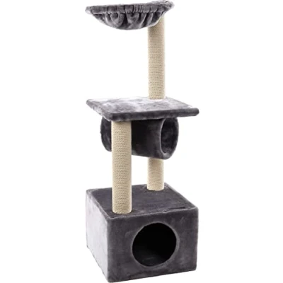 Matériau : peluche douce (450 g/m²) Grattoir avec corde à gratter en coton (6 mm) Diamètre grattoir : 7,5 cm Hamac, tunnel, plateforme et cachette La cachette est recouverte à l'intérieur