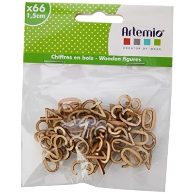 Marque : ArtemioRéférence Interne : 723Couleur : Bois naturelForme : ChiffresMatériau : BoisConditionnement : 1 sachet de 66 piècesLongueur : 15 cm