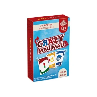Crazy Mau Mau est une variante excitante et déjantée du jeu de cartes classique Mau Mau, avec des cartes uniques et des actions inattendues.jeu n'apporte pas seulement du plaisir, mais aussi beaucoup de surprises et de rebondissements stratégiques à chaque partie ! En plus des cartes bicolores, on y trouve des cartes d'action farfelues comme échanger des cartes avec n'importe quel joueur ou des tirages 'Split' - répartir les 4 cartes à tirer entre les autres joueurs comme on le souhaite. Peut être combiné avec le Mau Mau original !