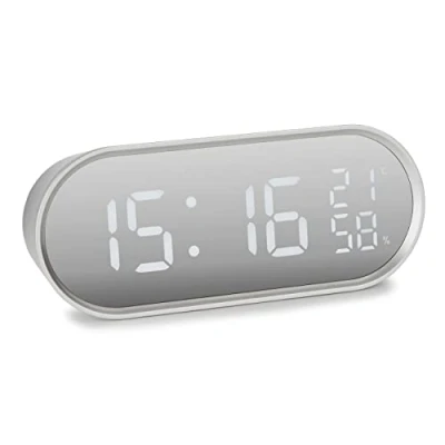 AmazonRéveil numérique avec fonction radio FM Affichage de l'heure, de la température, de l'humidité de l'air Affichage LED blanc durable, luminosité variable Câble d'alimentation USB inclus pour le raccordement à un bloc d'alimentation de téléphone portable (non inclus)