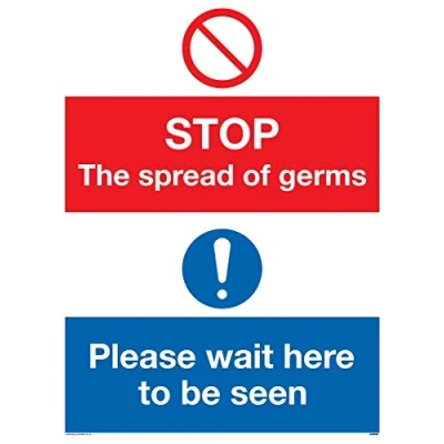 Autocollant « Stop germs Please wait here to be seen »