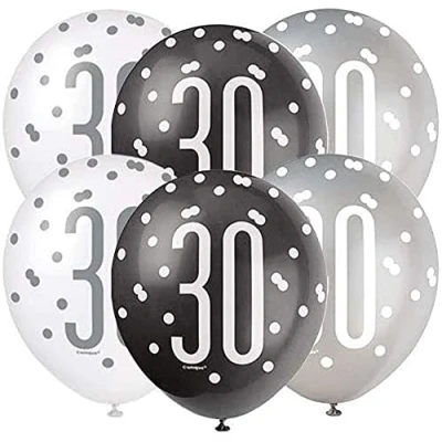 Ballons 30 ans Glitz Black Silver 6 morceaux