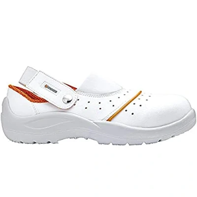 ENVIRONNEMENTS DE TRAVAIL SUGGÉRÉS : hygiène, santé, alimentaire et restauration Chaussure de sécurité de GRANDE RESPIRABILITÉ avec doublure SmellStop en tissu technique 3D pour une respirabilité maximale avec traitement antibactérien permanent empêchant la prolifération des micro-organismes, tels que les bactéries et les champignons, responsables de mauvaises odeurs et de la mycose SEMELLE DÉFATIGANTE, flexible et légère, s'adapte à n'importe quel type de surface La meilleure qualification de résistance au glissement (SRC) CARACTÉRISTIQUES ET POINTURES : tige en microfibre; col rembourré pour garantir un confort maximal et empêcher les inflammations du tendon; embout en acier Disponible en blanc et orange (EU 35-47/RU 3-12) Norme: EN ISO 20345:2011 / Catégorie de sécurité: SB E A FO SRC