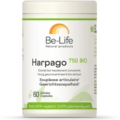 Complément alimentaire à utiliser dans le cadre d’une alimentation variée, équilibrée et d’un mode de vie sain.Au service de vos articulationsL'harpagophytum ou "griffe du diable" est une plante reconnue pour maintenir la mobilité et la flexibilité des articulations. Harpago 750 BIO est un extrait bio concentré. Les actifs majeurs sont les flavonoïdes, les phytostérols et les phénols.L'harpagophytum aide à maintenir une bonne santé articulaire en contribuant à la mobilité et à la souplesse des articulations.A recommander aux personnes âgées et aux sportifs.IngrédientsExtrait de racine de griffe du diable 5:1 (Harpagophytum procumbens (Burch.) Dc.) bio, Protéine de riz (Oryza sativa L.) bio.Valeurs nutritionnelles Pour 2 gélules Harpagosides 27 mg