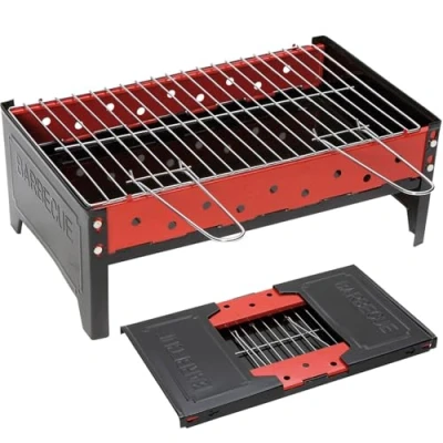 barbecue peut être plié en un paquet complètement plat,qui le rend facile à emporter, quesoit lors d'une excursion en camping, d'une escapade à la plage ou même pour un barbecue dans le jardin. Il ne faut que quelques secondes pour installerbarbecue et une fois refroidi, il peut être emballé tout aussi rapidement.Couleur : rouge et noirMatériau : acier inoxydableTaille : 44 x 25 x 16 cm (L x l x H)Surface de cuisson : 41 x 25 cm (L x l)Barbecue portable et pliableConstruction en acier résistant à la chaleurFacile et rapide à monter