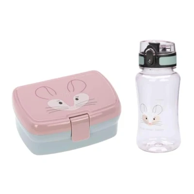 Ce pack de LÄSSIG se compose d\'une gourde et d\'une boîte à lunch, très pratiques à emporter à l\'école.La boîte à lunch possède un compartiment amovible pour s\'adapter à différents encas: le plateau peut contenir des fruits ou des aliments plus petits, tandis que le compartiment inférieur non divisé offre suffisamment d\'espace pour les sandwichs. La gourde assortie est parfaite pour transporter de l\'eau ou des jus de fruit. LÄSSIG est une marque allemande qui développe des produits attrayants, fonctionnels et amusants.Leur philosophie est basée sur la combinaison de créativité et de style de vie avec durabilité et responsabilité, c\'est pourquoi ils utilisent des matériaux recyclés, biologiques et non toxiques dans leurs accessoires de puériculture.CaractéristiquesCapacité de la gourde : 460 mlMatériau de la gourde : tritanBouchon étancheDimensions de la boîte à lunch : 22 x 20 x 7,5 cmMatériau de la boîte à lunch : PPNe passe pas au micro-ondesLavable au lave-vaisselleSans BPAID : 55186