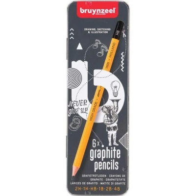Boîte De 6 Crayons Graphite 1H 2H Hb 1B 2B 4B Bruynzeel