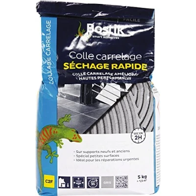 BOSTIK COLLE CARRELAGE POUDRE SECH.RAPIDE 5KG - Colle carrelage poudre pour tous types de carreaux jusquà 60x60 cm au sol et 45x45 cm au mur en intérieur ou en extérieur.Join… Voir la présentation