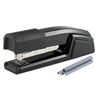 Extracteur d'agrafes intégré et rangement caché des agrafes. S'ouvre à 180 degrés pour les tableaux d'affichage et les travaux manuels Construction robuste en métal moulé sous pression de qualité industrielle Technologie No-Jam pour agrafer jusqu'à 25 feuilles, sans bourrage Pour de meilleurs résultats, utilisez avec les agrafes Bostitch Premium Standard