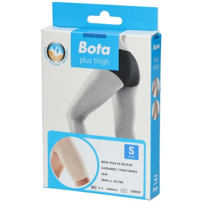 Bota Plus Cuisse Cuissarde Forme anatomique Tissu élastique fort Sans couture Indications: Post-traumatique Déchirure – claquage Elongation musculaire Surmenage Prévention de récidives Couleur: skin, blanc Dimension: TAILLE CIRCONFERENCE S -42 cm M 42 - 46 cm L 46 – 50 cm XL 50 – 56 cm Conditionnement 1 pièce