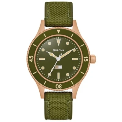Rendant hommage à l'héritage militaire de Bulova et à un rare prototype de l'US Navy de 1957, l'édition spéciale MIL-SHIPS Bronze célèbre le 150e anniversaire de Bulova. Cette montre analogique est équipée d'aiguilles luminescentes et d'une couronne vissée. Bracelet de Haute qualité en Silicone Vert, 21 cm de longueur et 18 mm de largeur avec une Boucle Ardillon Diamètre du boîtier: 41 mm, Épaisseur du boîtier: 14 mm, Couleur du boîtier: Bronze et Couleur du cadran: Vert Résistant à l'eau: 20 bar -Poids: 104 g La montre est livrée dans une belle boîte cadeau avec une garantie de 2 ans