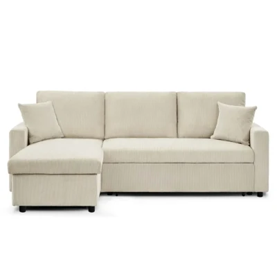 Le canapé d’angle Rico en velours côtelé combine style et fonctionnalité. Réversible et convertible il offre un couchage d’appoint de 130x195 cm et un coffre de rangement pratique. Disponible en plusieurs coloris il est parfait pour les salons modernes.