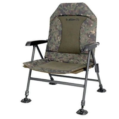 Chaise de pêche inclinable Trakker RLX Recliner - Chaise de pêche haute de Trakker - Dimensions : Hauteur du dossier environ 62cm, Hauteur de l’assise 35-45cm ; Largeur de l’assise 55cm - Poids : environ 5,3 kg - Charge maximale : 130 kg (en utilisation normale) - Matériau : Extérieur 100% polyester - Très confortable grâce à une doublure épaisse - Dossier multipositions pour plus de confort - Très rapide à utiliser, il suffit de le déplier et de se détendre - Quatre pieds réglables avec de grands pieds en terre pour une mise à niveau parfaite - Finition en motif camouflage spécial Trakker Détendez-vous au maximum pendant vos séances avec la gamme RLX de Trakker, conçue pour un confort et un style durables. La dernière génération de lits et de chaises RLX est dotée d’un rembourrage des plus luxueux, d’un soutien là où vous en avez le plus besoin et de possibilités de réglage pour une posture optimale dans toutes les situations que vous êtes susceptible de rencontrer. Avec le motif camouflage Trakker, non seulement vous êtes très confortable, mais vous avez aussi fière allure !