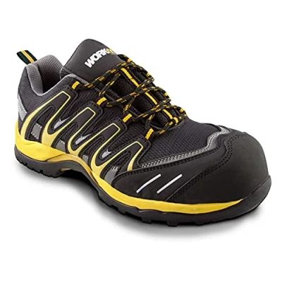 CHAUSSURE DE PROTECTION ESD WORKFIT TRAIL JAUNE NO.35 : Contenu : Chaussure légère et confortable pour le travail et l'utilisation quotidienne. Fabriquée en tissu NYLON MESH 3D respirant. Embout de protection en fibre de verre (sans métal) avec une résistance de 200 joules. Semelle intérieure en Polyamide flexible et résistante aux perforations (4 mm d'épaisseur). Semelle en caoutchouc EVA de forme anatomique, antistatique et antidérapante. Chaussure de sécurité offrant une grande flexibilité et un grand confort. Cou-de-pied protégé avec languette rembourrée et cousue. EN ISO 20345:2022 Norme / catégorie : S1 PL SR. Chaussure ESD avec niveau de décharge maximal pour les charges électrostatiques. Résistances électriques entre 0,1 méga-ohm et 100 méga-ohm. chaussure 100% sans métal. Spécifications de la chaussure : Chaussure de sécurité S1 PL SR. Tissu en nylon mesh 3D respirant. Semelle intérieure en Polyamide. chaussure 100% sans métal. Grande flexibilité et confort.