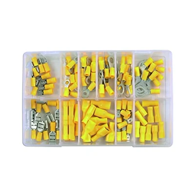 Includes Blade, Spade, Bullet & Ring terminals Cable entry : 4mm2 to 6mm2 110pc Connect;Workshop;Consumables;Assorted;Yellow;Terminals;Box;Qty;110;Electrical;Assortments