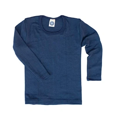 AmazonCosilana Maillot de corps à manches longues en laine et soie pour enfant, Marine, 140 cm