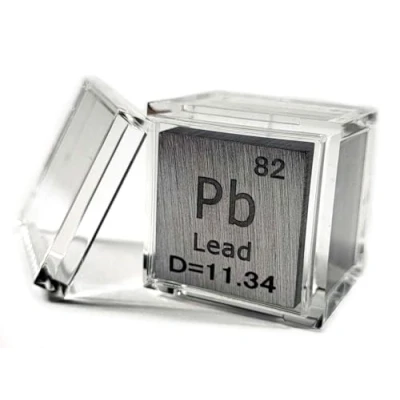 cube en métal Plomb jusqu'à 99,9 % pur, tableau périodique, élément, densité gravée, collection, science, éducation, bloc d'affichage, + étui acrylique, 1 pièce