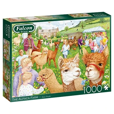 AmazonFalcon de luxe puzzle de 1000 pièces A illustration de caractère mettant en vedette les résidents duveteux à quatre pattes d'une ferme d'alpaga alors qu'ils charment leurs iteurs adorants Illustré par l'artiste Anne Searle Produit en utilisant du carton recyclé de haute qualité. 2023Terminé Le puzzle mesure environ 68 x 49 cm. Nombre d'unités : 1,0, Éditeur: Diset