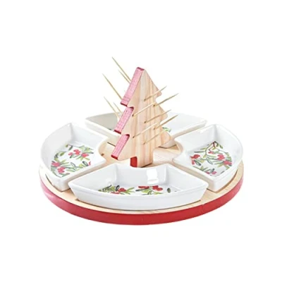 Plateau à apéritifs de la marque DKD Home Decor Noël Couleur : blanc, rouge et vert Matériau : pin et grès Dimensions : 24 x 24 x 13 cm Le plaisir pour l'été est assuré avec ces propositions qui plairont aux petits et aux grands