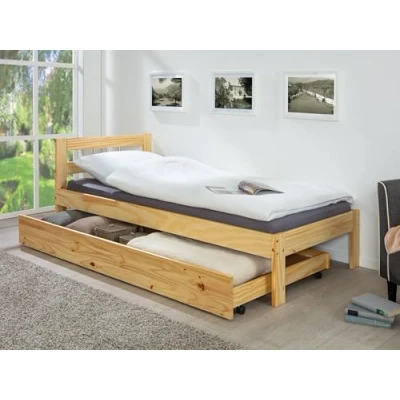 Tiroir à roulettes amovible pour lit en pin massif Idéal comme tiroir de rangement sous le lit, en utilisant ainsi un espace de rangement habituellement inutilisé Facile à assortir grâce à sa couleur bois naturel Confortable grâce à ses roulettes permettant un retrait facile Dimensions : 199 x 94 x 22 cm