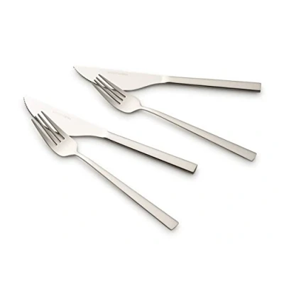 Set de couverts à pizza durable et élégant, fabriqué en acier inoxydable de haute qualité et composé de 2 fourchettes robustes et de 2 couteaux. Grâce aux couteaux en acier à lame, les couteaux à pizza sont extrêmement stables et ne se tordent pas. Parfaitement adapté à la dégustation de pizzas, quiches et tartes flambées dans les règles de l'art. Peut également être utilisé comme couvert à steak. Les couverts tiennent parfaitement en main grâce aux manches ergonomiques. Découpe sans effort à travers une pâte croustillante, un steak et tous les autres aliments. Un design attrayant et intemporel qui s'adapte à toutes les séries de couverts. Lavage à la main recommandé. 4 pièces pour 2 personnes.