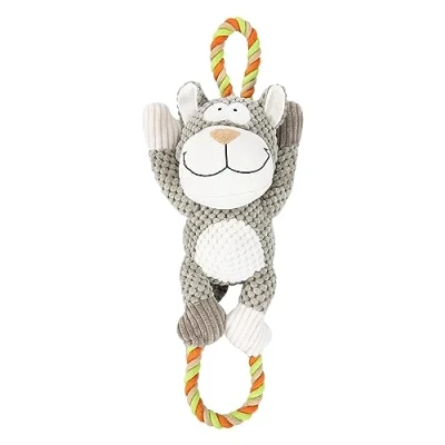 Ce jouet mignon pour chien est un joli chat d’approximativement 44 cm de long. Avec ses jambes et la tête avec corde, il est parfait pour jouer, récupérer et tirer dessus. Le couinement émis lorsque l'on appuie sur l'animal attire l'attention et anime le chien à jouer. Son aspect attrayant et le mélange de matériaux feront rapidement du jouet le meilleur compagnon de jeu ou de câlins de votre chien. Le jouet peut être nettoyé comme un lavage à la main. Avec son aide, le chien peut être entraîné en jouant et l'activité de votre animal peut être augmentée en lançant, récupérant et tirant sur le jouet.