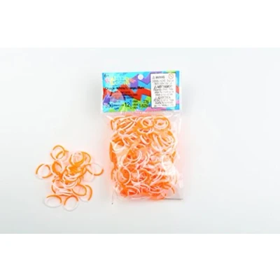 Elastiques Rainbow Loom Bicolore Orange Blanc