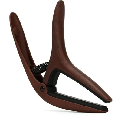 Opération rapide à une main Retournez simplement le capodastre pour adapter les touche plates ou courbées Pression de serrage sans bourdonnement pour les guitares acoustiques et électriques Construction robuste en aluminium léger