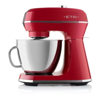 Robot de cuisine Eta Gratus - pétrin planétaire, puissance 1200 W, engrenages internes en métal, bol en acier inoxydable, volume du bol 5 l, variateur de vitesse, bouton PULSE, avec verrouillage de sécurité, fonctions fouetter, mélanger, pétrir et allumer, comprend un accessoire pour râper, un hachoir à viande, un fouet (fouet ballon), un crochet pour pétrir, un bol, 3 disques à râper, niveau sonore 80 dB, longueur du câble 1,4 m, poids 10,82 kg, dimensions 42,4 × 32,6 × 59,6 cm (H×L×P), rouge