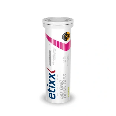 Complément alimentaire à utiliser dans le cadre d’une alimentation variée, équilibrée et d’un mode de vie sain.Etixx Isotonic Drink Tabs Lemon est une boisson sportive isotonique légèrement effervescente, composée de glucides et d'électrolytes. Elle est idéale pour soutenir l’hydratation pendant l’effort, améliorer la performance et prévenir les crampes.IngrédientsDextrose, acide alimentaire : acide citrique ; carbonate acide de sodium, carbonate acide de potassium, carbonate de calcium, maltodextrine, arôme de citron vert ; carbonate de magnésium, chlorure de sodium, édulcorant : sucralose ; acide L-ascorbique ; colorant : riboflavine ; chlorhydrate de thiamine.Valeurs nutritionnelles Composant Pour 100 g Par 2 comprimés % AR* Énergie (kcal) 338 74 - Énergie (kJ) 1441 317 - Graisse (g)