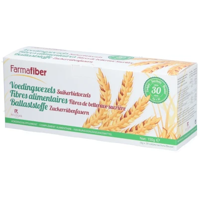 Complément alimentaire à utiliser dans le cadre d’une alimentation variée, équilibrée et d’un mode de vie sain.Les sachets Farmafiber contiennent de la fibre de betterave pure. La betterave est l’une des sources les plus complètes sur les plans fonctionnels et métaboliques du tractus digestif. Ils sont fabriqués sans adjonction de sucres, et ne contiennent pas de gluten, ni de lactose ou d’acide phytique.Composition:Fibres de betteraves sucrières (Beta vulgaris L.)Valeur nutritionnelle: Pour 100 g Pour 5 g Énergie 208 kcal /849 kJ 10 kcal / 42 kj Lipides 0,5 g 0,03 g Acides gras saturés 0,5 g 0,03 g Glucides 5,5 g 0,28 g Sucres 5,5 g 0,28 g Fibres alimentaires 73 g 3,65 g Protéines 9 g 0,45 g Sel 0,13 g 0,007 g Conseil d'utilisation:Afin d'obtenir un bon résultat, prendre 1 à 3 sachets par jour. Les sachets peuvent être ajoutés à un liquide (jus de fruits, potage), à des produits laitiers (yaourt, fromage blanc) ou à des préparations (omelette, pudding). L'utilisation de fibres exige une absorption suffisante de liquide. Buvez au moins 1,5 à 2l par jour. Précautions d'emploi:Ne pas dépasser la dose journalière recommandée. Tenir hors de la portée des enfants. Conserver dasn un endroit frais et sec.Poids net: 150 gFabricant: REVOGAN Landegemstraat 1 9031 Drongen Belgique