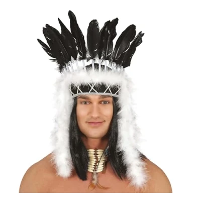 Panache à plumes de chef indien adulte pour compléter votre déguisement. La coiffe indienne bicolore est parfaite pour représenter le chef suprême dune tribu amérindienne lors dune fête à thème Western