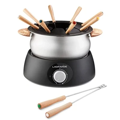 THERMOSTAT REGLABLE : Pour adapter la température en fonction du type de fondue. Fondue à l'huile, au bouillon, au fromage, au chocolat, ... POIGNEES EN BOIS : Esthétique "haut de gamme" et chaleureuse PRATIQUE : nettoyage facile grâce à son revêtement anti-adhésif à l'intérieur du caquelon FABRIQUE EN FRANCE : produit imaginé, développé et fabriqué au sein de l'usine Lagrange de la région lyonnaise