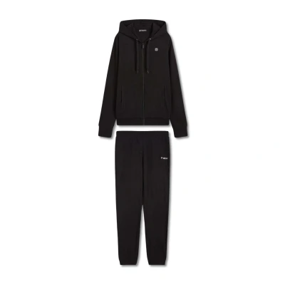 Costume de sport à coupe régulière en interlock de coton, un tissu qui assure douceur, densité et flexibilité tout en offrant confort et liberté de mouvement tant pour le pantalon que pour le sweat-shirt. Le sweat-shirt est doté d'une capuche ajustable par cordon, d'une fermeture éclair sur toute la longueur, de poches passepoilées et de bords côtes aux poignets et à l'ourlet. Le pantalon comprend des poches passepoilées et des bords côtes aux poignets et à la taille. Les deux sont décorés d'un petit logo Freddy : sur le côté gauche avant du sweat-shirt et sur le côté du pantalon en dessous de la poche.
