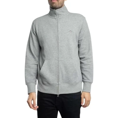 GANT REG Full Zip Sweat Sweatshirt Zippé Shield Regular, Grey Melange, S Homme