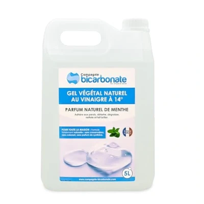 Gel Vinaigre Menthe - Notre gel nettoyant de 5 L est constitué de vinaigre végétal naturel et de gomme de xanthane naturelle. Il est doté d'un embout applicateur à écoulement modulable avec bouchon pour faciliter son utilisation. Vinaigre Pour Toute La Maison - C'est le produit ménager idéal à utiliser pour une propreté quotidienne : cuisine, plan de travail, salle de bain ou encore jardin. Ce gel multi fonctions détartre, dégraisse, nettoie pour une maison qui brille ! Formule Naturelle & Sûre - Nous nous assurons de proposer un gel de vinaigre au parfum naturel de menthe pour sentir une odeur agréable dans votre maison. Il est sans conservateurs ni perturbateurs endocriniens pour votre bien-être. Fabriqué En France - Nous privilégions une production locale en collaborant avec des PME proches de chez nous pour garantir une démarche engagée, écologique et de proximité. Grâce à nos produits éco-responsables, naturels et efficaces. La Compagnie du Bicarbonate -Spécialisés dans la fabrication de bicarbonate de sodium,notre expertise aux produits à base d'autres matières premières simples et naturelles en alliant: praticité, économie et préservation de la santé et de l’environnement.