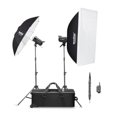Kit flash de studio Godox SK300IIV-C Le kit de flash de studio Godox SK300IIV-C est une solution d'éclairage complète pour les photographes qui ont besoin d'une puissance et d'une performance de qualité professionnelle dans un format portable. Le kit comprend deux flashs de studio SK300IIV, deux pieds de lumière de 2m, une boîte à lumière de 33 x 33cm, deux parapluies de 55 x 70cm et un émetteur sans fil XT16.