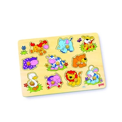 Goki 57838 Puzzle En Bois À Encastrement Jeunes Animaux Ii 10 Pièces