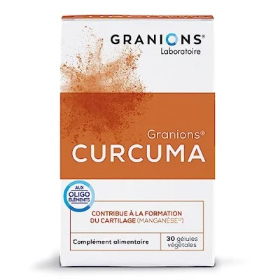 CURCUMA (150mg) | Le curcuma est un puissant antioxydant et anti inflammatoire grâce à sa teneur en curcumine. Les compléments alimentaires de curcuma aident à protéger les cellules contre les dommages oxydatifs et contribuent ainsi à prévenir le vieillissement prématuré. Notre formule au curcuma aide à soutenir le confort articulaire au quotidien. De plus, Notre complement alimentaire curcuma offre un soutien naturel contre le stress oxydatif. CURCUMA + PIPERINE | L'ajout de pipérine, extrait du poivre noir, au curcuma améliore son absorption. La pipérine augmente la biodisponibilité de la curcumine, permettant ainsi une meilleure efficacité dans son action anti inflammatoire et antioxydante. COMPLEMENT ALIMENTAIRE CURCUMA | Les compléments alimentaires de curcuma gelules, riches en curcumine, sont des alliés précieux pour leur action anti inflammatoire, soulageant les douleurs et favorisant une meilleure mobilité. Chaque gélule contient un extrait de curcuma hautement assimilable. OLIGO ELEMENTS | En plus du curcuma et de la curcumine, ces gélules contiennent du manganèse et du cuivre, qui jouent un rôle essentiel dans la fonctionnalité des enzymes antioxydantes de l'organisme LABORATOIRE DES GRANIONS | Marque française experte en oligothérapie et santé naturelle depuis 1948, vendue en pharmacies et parapharmacies. Gamme complète de compléments alimentaires.
