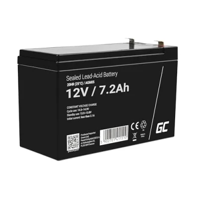 CdiscountLa batterie dalimentation AGM VRLA Green Cell 12V 7.2Ah est la solution idéale pour le travail tampon et cyclique. Elle est complètement sans entretien jusquà 5 ans et offre une sécurité maximale dutilisation grâce à la construction empêchant les fuites délectrolyte.