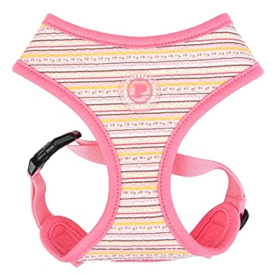 Style de harnais de base comme « Harnais A » Motif rayé et motif uni Ceinture de poitrine réglable avec boucle Décoré avec étiquette en caoutchouc Pinkaholic Taille M : tour de cou de 32 cm, tour de poitrine de 40 à 55,9 cm
