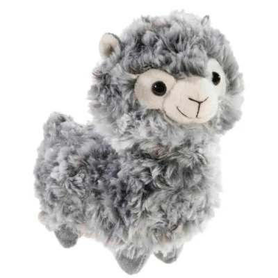 Lama, en peluche bouclée bicolore, position debout, yeux en plastique, peluche, Éditeur: HEUNEC