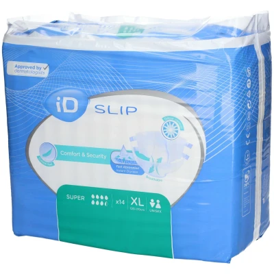 La gamme iD Expert Slip convient aux personnes souffrant d’incontinence modérée à très lourde et est disponible dans une gamme de tailles et d’absorptions différentes. Il est particulièrement recommandé pour les personnes limitées en mobilité ou grabataires.Bénéfices Fast Absorption Le voile d''acquisition permet l''absoprtion rapide de l''urine vers un tampon multi-couches contenant du SAP (Super Absorbant). Le SAP est conçu pour absorber et retenir l''urine à l''intérieur du tampon, garantissant l''effet "garde au sec" Odour Control Système d''odour control présent dans le tampon absorbant qui empêche la formation d''ammoniaque et donc, d''odeurs embarrassantes. Anti Leakage Protection Barrières anti-fuites intégrées constituées de matière hydrophobe qui aide à empêcher les fuites sur le côté, assurant ainsi sécurité et discrétion Cotton Feel Un voile externe doux "toucher coton" assure un confort et une discrétion optimales Double Wetness Indicator Le témoin d'humidité vous indique quand le produit doit être changé Dermatologically tested Tous les produits ID sont testés sous contrôle dermatologique, afin de limiter les risques d'irritation cutanée No latex Tous les produits ID sont sans latexIndicationsIl est particulièrement recommandé pour les personnes limitées en mobilité ou grabataires.Conseils d'utilisation Position debout: Commencez par plier la protection iD Expert Slip en deux dans le sens de la longueur, laissez vos doigts sur le non tissé et faites les bouger de part et d’autres afin de redresser les barrières anti-fuites." Passez ensuite la protection iD Expert Slip entre les jambes de l’avant vers l’arrière en déployant les extrémités et en s’assurant que l’extrémité supérieure soit positionnée sur le coccyx. Assurez-vous que la protection soit centrée correctement en utilisant les indicateurs de miction comme repère. Ensuite, fixez les adhésifs du bas afin d’assurer un bon maintien au niveau des jambes. Positionnez ensuite les adhésifs du haut afin d’ajuster la protection au niveau de la taille. Enfin, ajustez pour un confort optimal. Assurez-vous que les velcros soient collés correctement. À la fois le haut et le bas des adhésifs peuvent être fixés soit dans une position angulaire ou linéaire. Ils peuvent également être refermés et réajustés si nécessaire."Position couchée: Commencez par plier la protection iD Expert Slip en deux dans le sens de la longueur, laissez vos doigts sur le non tissé et faites les bouger de part et d’autres afin de redresser les barrières anti-fuites. Tournez la personne délicatement sur le côté, en position de sécurité (légèrement plier la jambe supérieure afin qu’ il/elle ne tombe pas hors du lit), mettre la protection à l’arrière de la personne en s’assurant que le haut de la pulpe se situe à la base du pli-inter fessier.Centrez la protection en utilisant les indicateurs de miction comme guide. Maintenir votre gouttière formée et passez la protection entre les jambes de la personne." Remettrez la personne sur le dos et ramenez le produit entre les jambes en s’assurant que les barrières anti-fuites restent activées, ensuite ajuster l’avant de la protection. Si nécessaire, tournez à nouveau la personne sur le côté afin de vous assurez que l’arrière de la protection et que les adhésifs de fixation soient correctement positionnés. Ensuite, fixez les adhésifs du bas afin d’assurer un bon maintien au niveau des jambes. Puis, fixez les adhésifs du haut en position horizontale afin d’assurer un bon maintien autour de la taille. Vérifiez le confort et l’ajustement (les adhésifs peuvent être repositionnés. Assurez vous que les adhésifs soient collés correctement. Conditionnement Sachet de 14 pièces