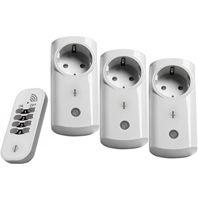 Intertechno ITI-3 set de prises sans fil, puissance max. : 2 300 W - A item98993 9005437310044 Couleur : BlancSet de prises sans fil Intertechno ITI-3, puissance max. : 2 300 W - AFonctions, caractéristiques et autres informationsCommutation à distance de lampes et d'appareils électriquesBouton marche/arrêt sur la priseinterrupteur bipolairePour les émetteurs et les solutions domestiques intelligentes d'IntertechnoLe cryptage persiste même après une coupure de courantCaractéristiques techniquesTension de la batterie : 3 VType de pile : CR2032Codage : 8 emplacements de mémoireFréquence radio : 433,92 MHzCharge connectée maximale : 2 300 WDimensions du récepteur : 110 × 52 × 32 mmDimensions de l'émetteur : 88 × 38 × 14 mmTension d'alimentation : 230 VClasse de protection : IP203 x adaptateurs, 1 x télécommande