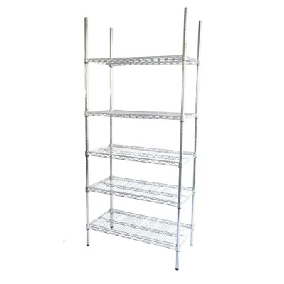 Étagère chromée extrêmement robuste à 5 plateaux Dimensions : 91 x 46 x 188 cm (LxlxH) Élégante et stable en même temps avec capacité de charge de 1250 kg, optimale pour une utilisation professionnelle en intérieur Plateaux à grille avec ouverture 25 mm, possibilité de réglage en hauteur sur plusieurs niveaux intermédiaires, capacité de charge de 250 kg pour chaque plateau Résistante aux chocs et aux rayures, ainsi qu'aux huiles, graisses, bases et acides
